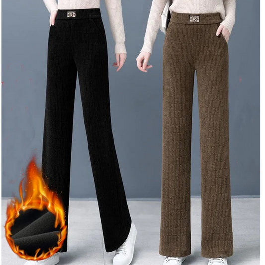 Ciepłe spodnie damskie z wysokim stanem i szerokimi nogawkami
