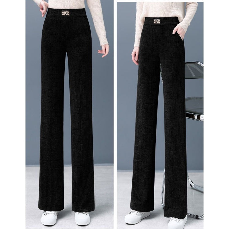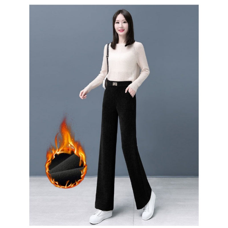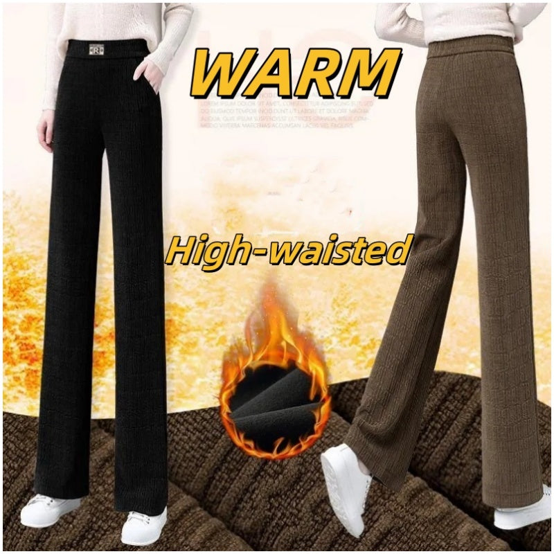 Pakiet zawiera: 1 * damskie ciepłe spodnie z szeroką nogawką z wysokim stanem