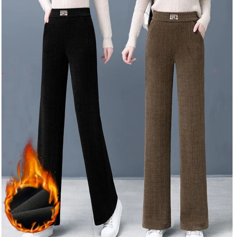 Ciepłe spodnie damskie z wysokim stanem i szerokimi nogawkami