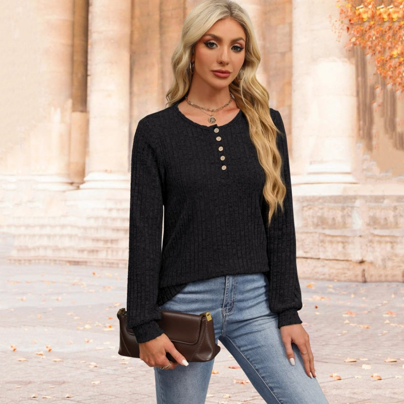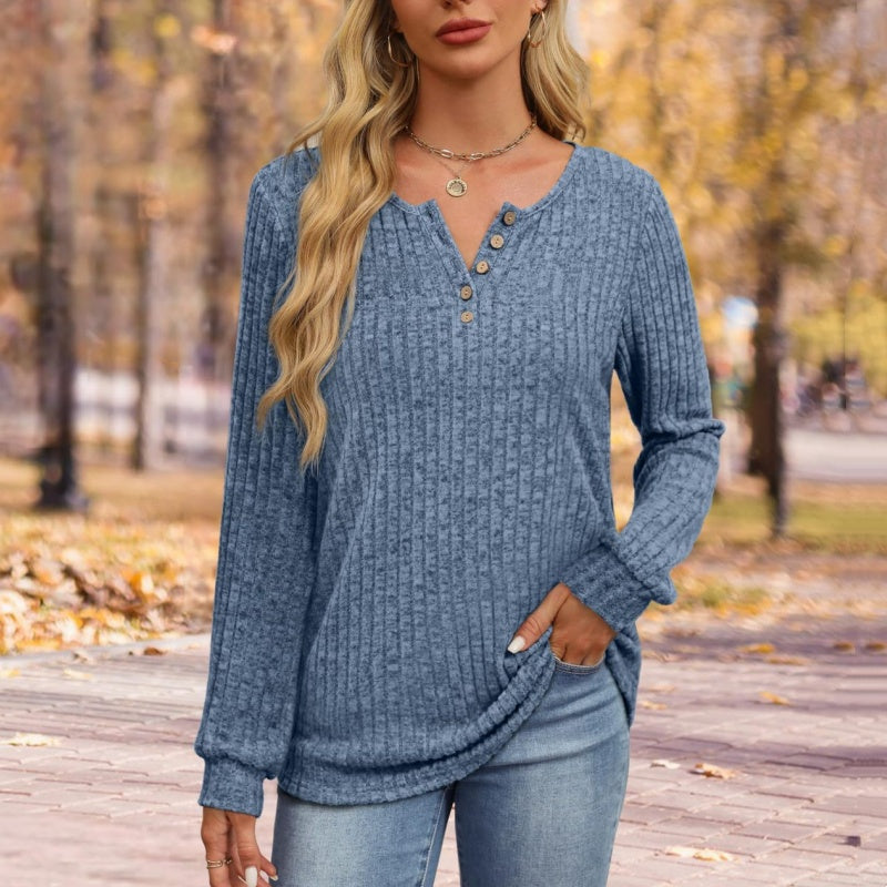 Wielofunkcyjny dekolt: Ten top posiada krój z pięcioma guzikami, który pozwala łatwo zmieniać codzienny dekolt w kształcie litery V lub skromny okrągły dekolt, oferując różnorodne opcje stylizacji.