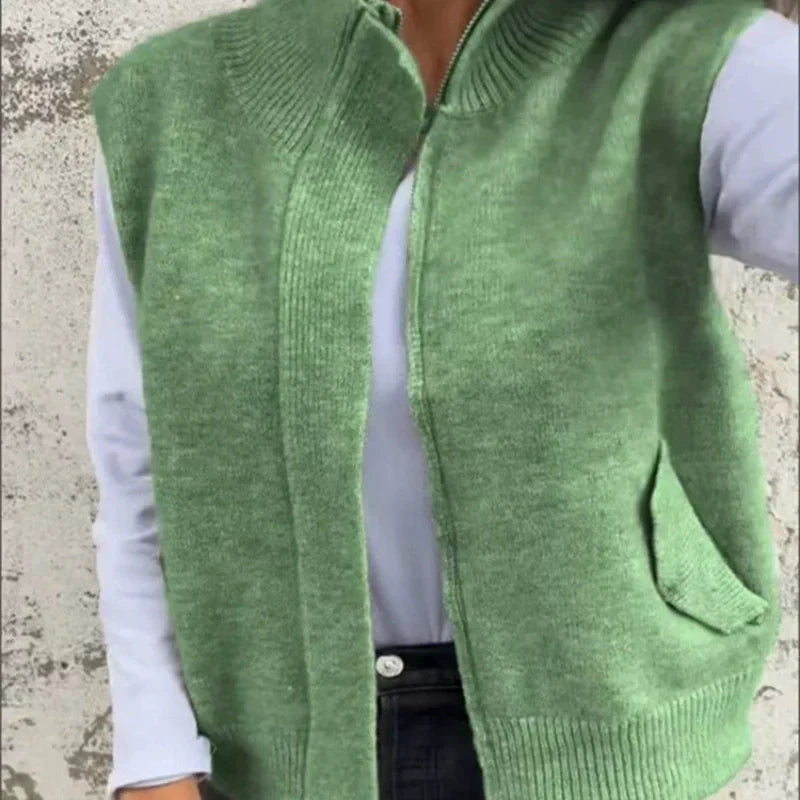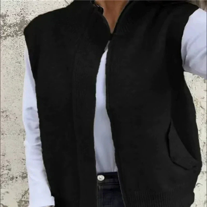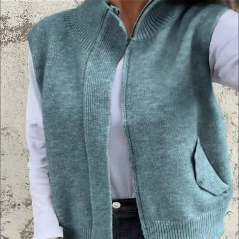 🔥 Damski modny wełniany bezrękawnik z zamkiem – ciepły i stylowy na jesień!