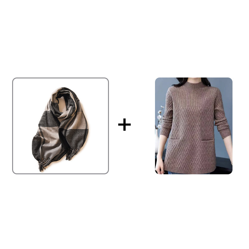 Damski modny sweter średniej długości z kieszeniami